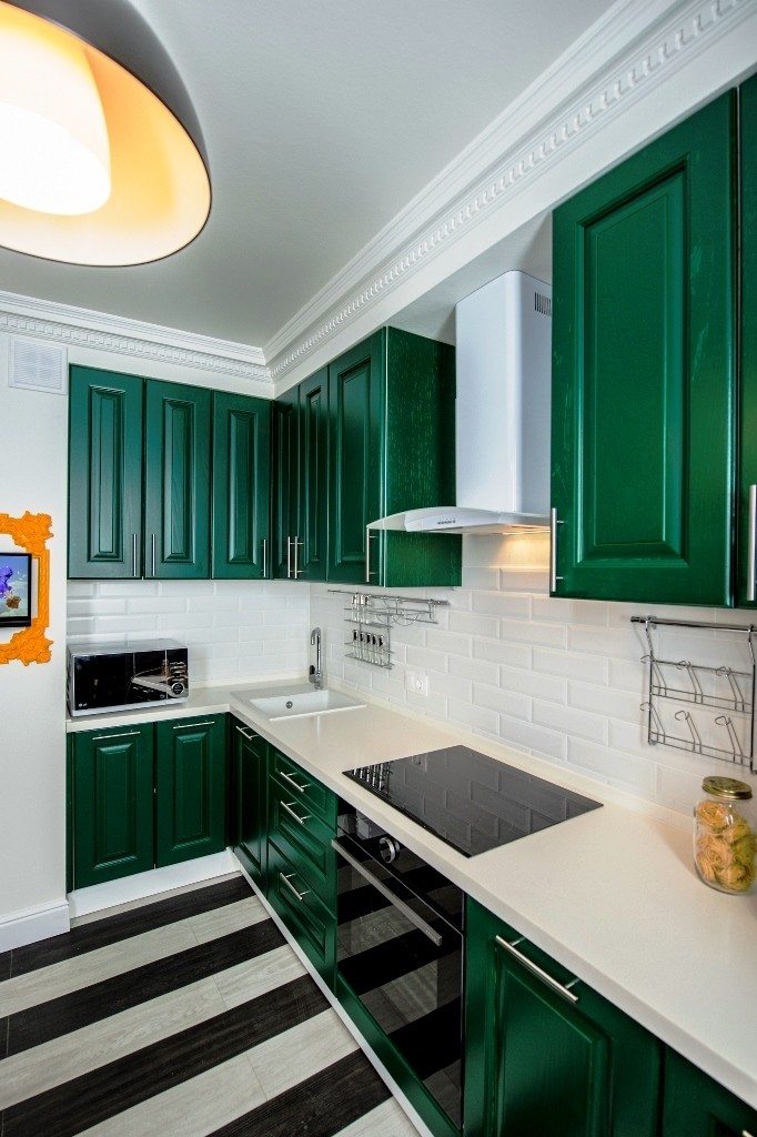 зеленый — подойдет для кухни в стиле кантри, для загородных домов;